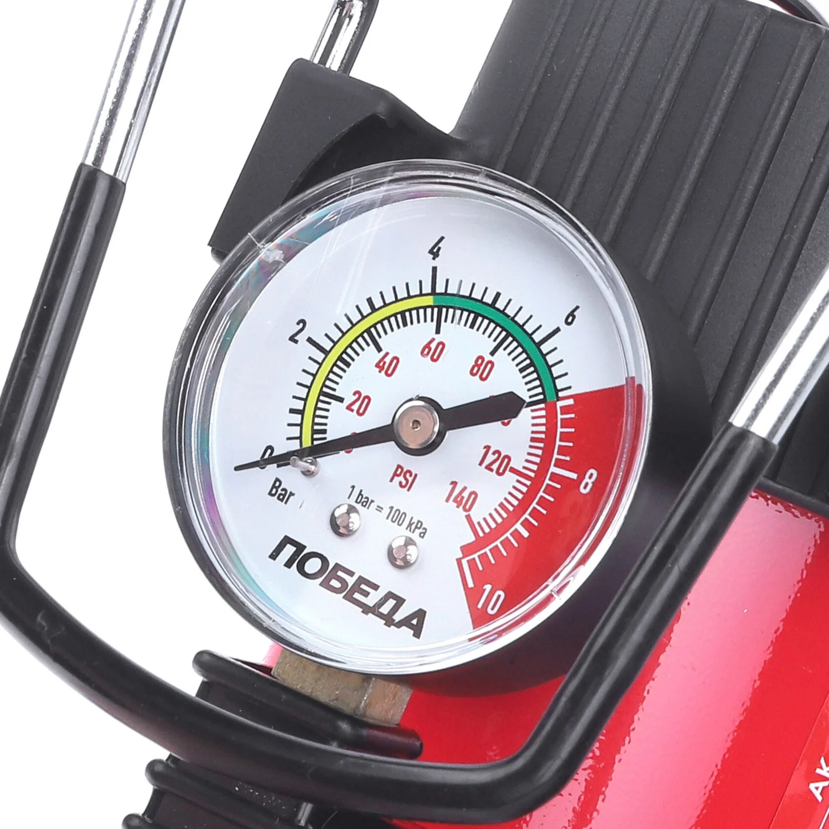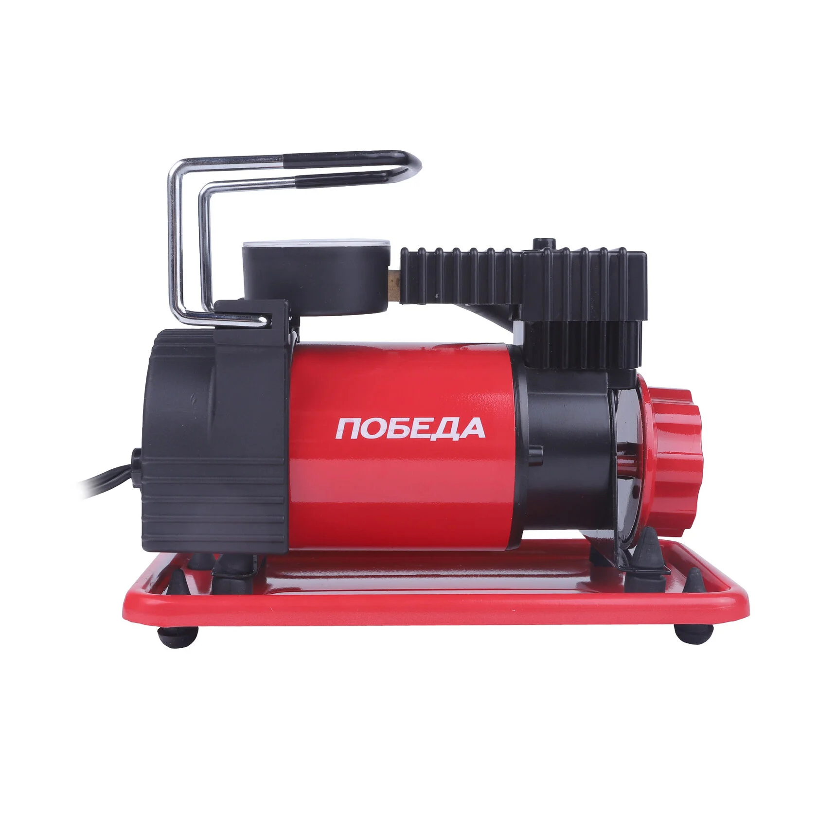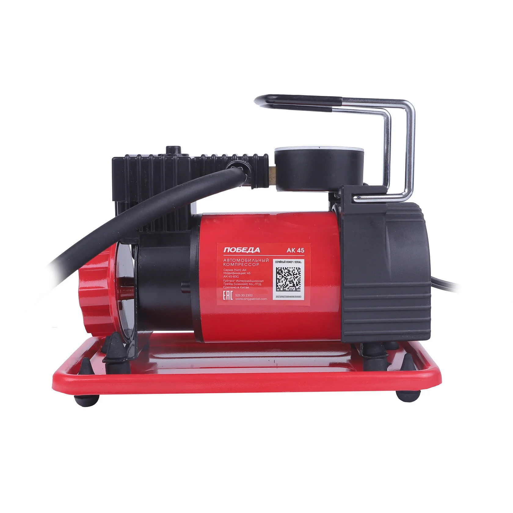 Автомобильный компрессор ПОБЕДА AK 45 предназначен для накачивания колёс легковых автомобилей, кроссоверов, внедорожников, а также лёгкого коммерческого транспорта. Металлическая опора обеспечивает устойчивость при работе, защищает устройство от ударов и других повреждений механического типа. Установлен воздушный фильтр, для предотвращения попадания пыли в поршневую группу, что увеличивает ресурс работы компрессора. Поставляется в транспортировочной сумке. Оснащен манометром.