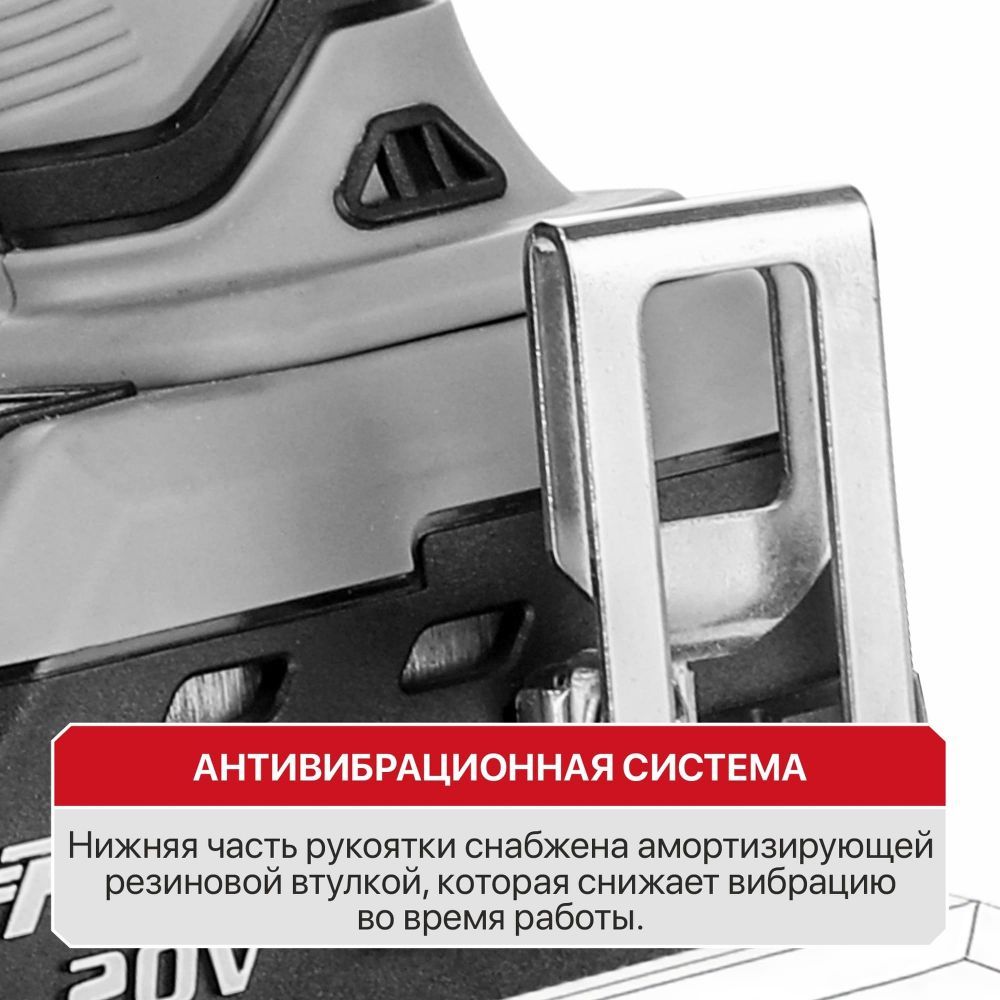 Нижняя часть рукоятки снабжена амортизирующей резиновой втулкой, которая снижает вибрацию во время работы.