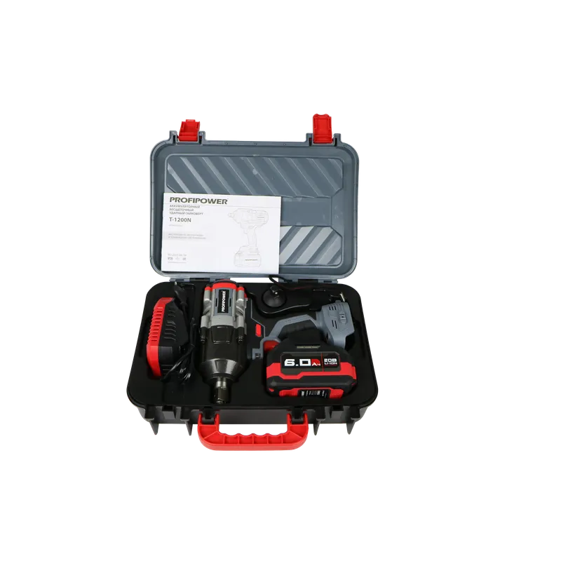 Гайковерт 1 шт Аккумулятор 6.0 Ач 1 шт Зарядное устройство 1 шт Адаптер переходник 3/4"–1/2" 1 шт Кейс 1 шт Инструкция с гарантийным талоном 1 шт |