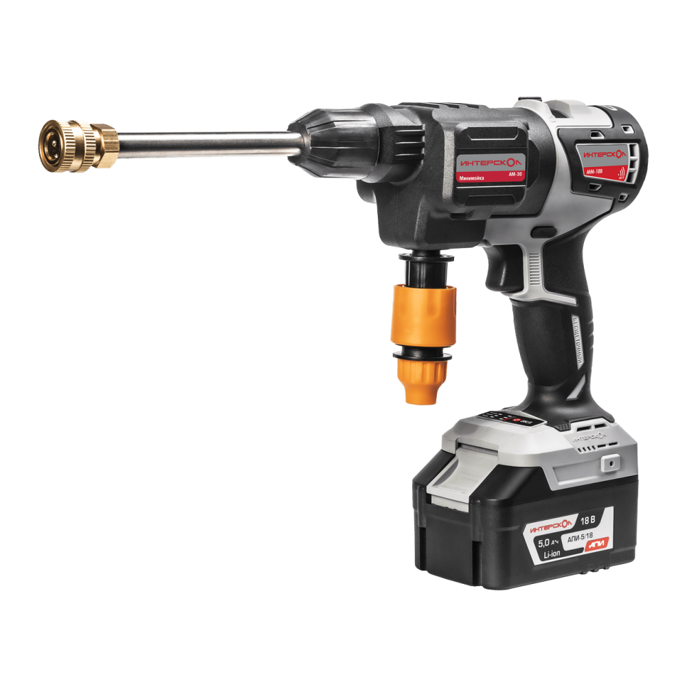 Модуль минимойки АМ-30 МультиМАКС18 поможет отмыть разнообразные поверхности: автомобиль, колеса, шанцевый инструмент и тому подобное даже там, где нет сети 220В и шланга с водой.