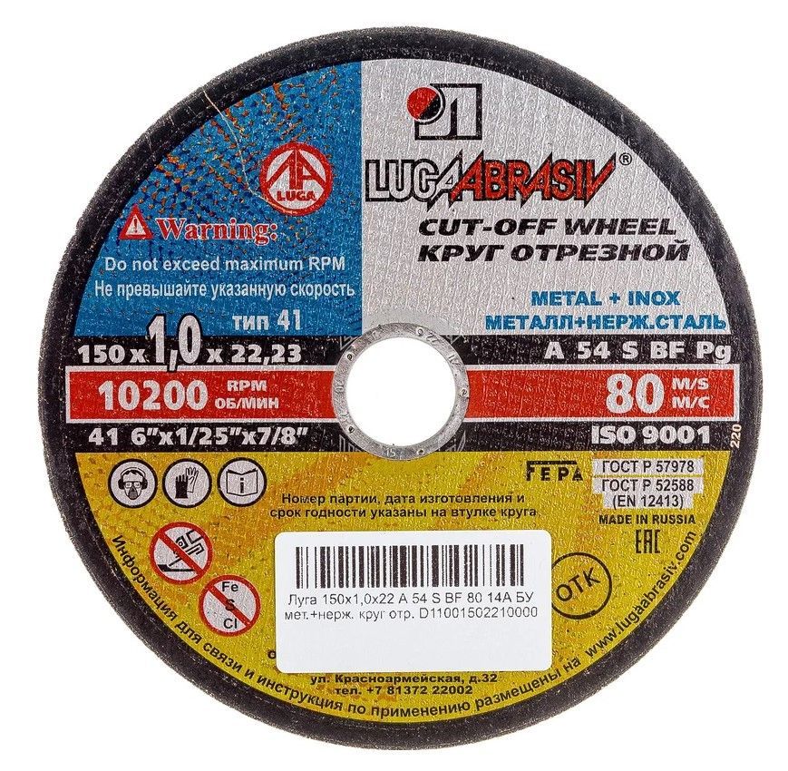 круг отрезной по металлу 150х1,6х22 луга купить, цена, фото, описание, характеристики, инструкция, отзывы, недорого купить, скидка, официальный сайт, магазин, самара, заказать