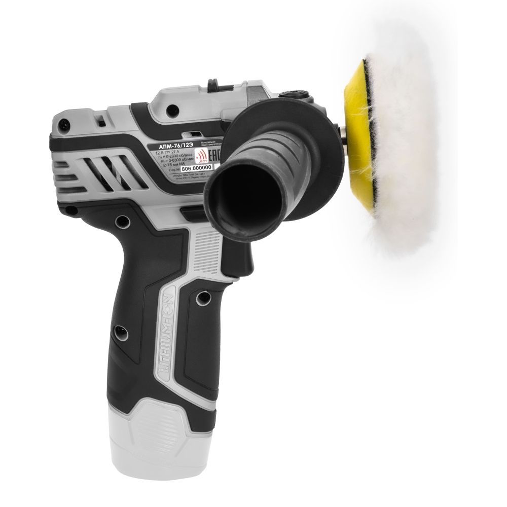 Аккумуляторная полировальная машина Интерскол АПМ-76/12Э применяется для шлифовки и полировки различных поверхностей - деревянных, металлических, окрашенных, пластиковых, а также для обработки их щетками-крацовками. Особенностью данной модели является возможность регулирования оборотов, что необходимо для обработки деликатных поверхностей, например, полировки ЛКП автомобиля или поверхности фар. Аккумуляторная полировальная машина работает от Li-Ion туннельных аккумуляторных блоков платформы АПИ-Т, что определяет ее компактность. Возможность оснащения машины аккумуляторными блоками АПИ- Т энергоемкостью до 72Вт*ч позволяет достичь характеристик, сопоставимых с 18В аккумуляторной техникой. Регулятор скорости позволяет подобрать оптимальные обороты для выбранной операции. Блокировка шпинделя облегчает замену оснастки. Эргономичный обрезиненный корпус сокращает усилия, необходимые для удержания машины и снижает уровень вибрации.