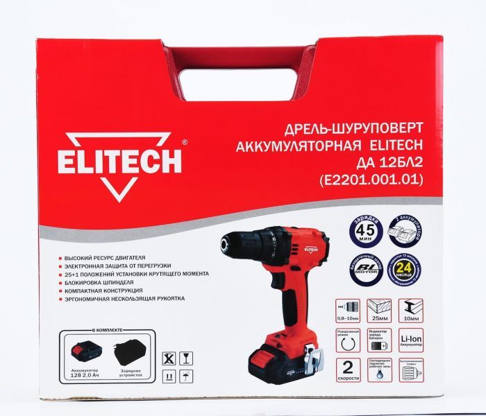 Дрель аккум Elitech ДА 12БЛ2 Е2201.001.01