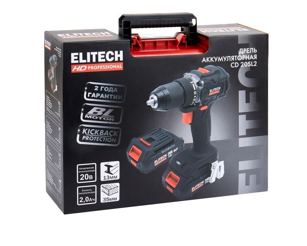 Аккумуляторная дрель-шуруповерт Elitech HD CD 20SL2 E2201.040.01 предназначена для сверления отверстий в черных и цветных металлах, дереве и производных материалах на его основе (фанера, ДСП, OSB, МДФ и подобные), различных видов пластика, для установки крепежа. Примером использования является проведение отделочных и строительных работ, установка легкого оборудования, сборка мебели, монтаж кухонь, использование в мастерской и в домашнем хозяйстве.
