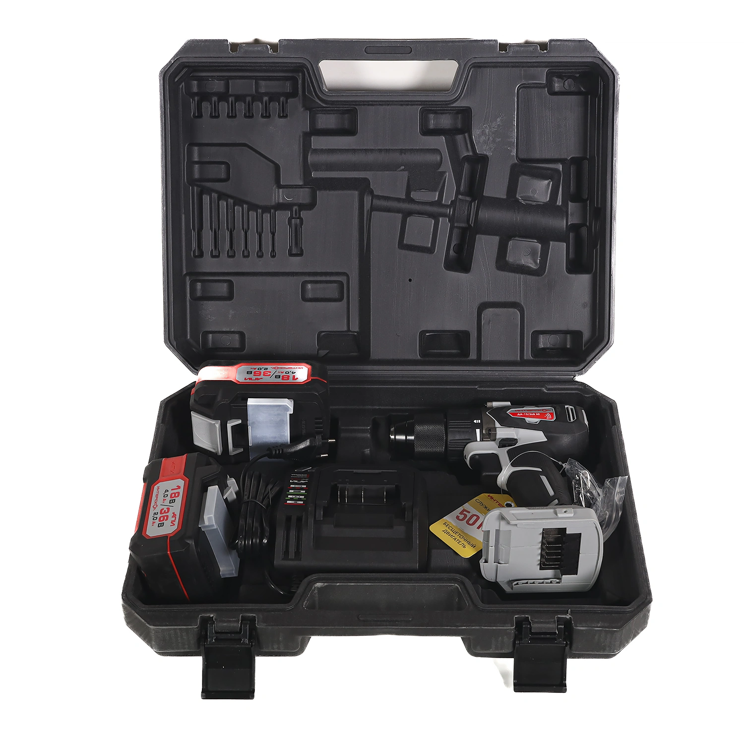Дрель-шуруповерт - 1 шт. Аккумулятор 2 Ач - 2 шт. Зарядное устройство - 1 шт. Кейс - 1 шт. |