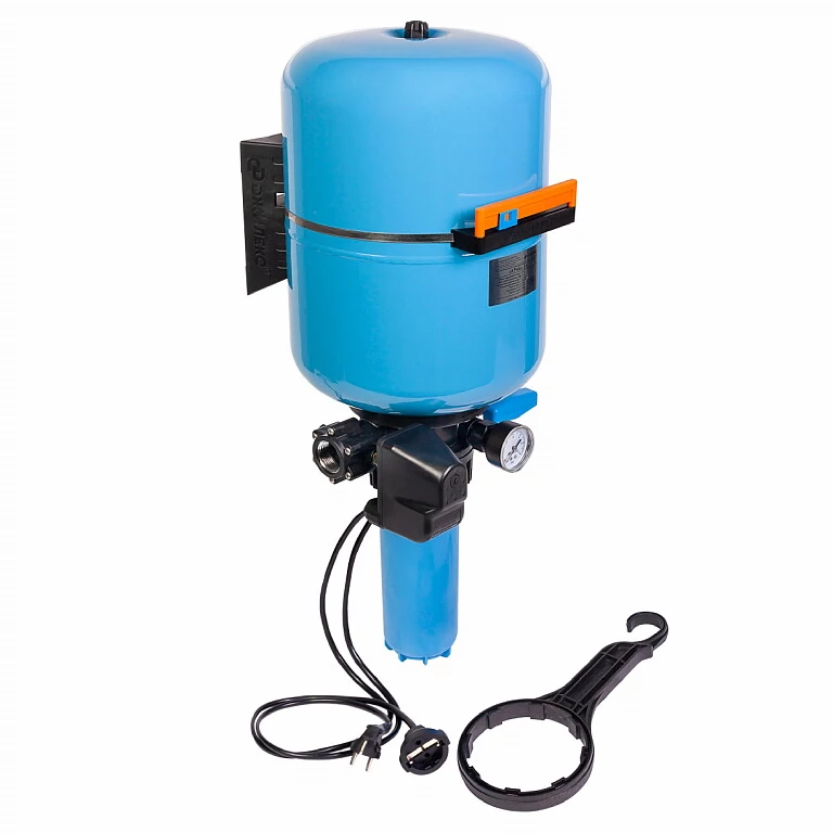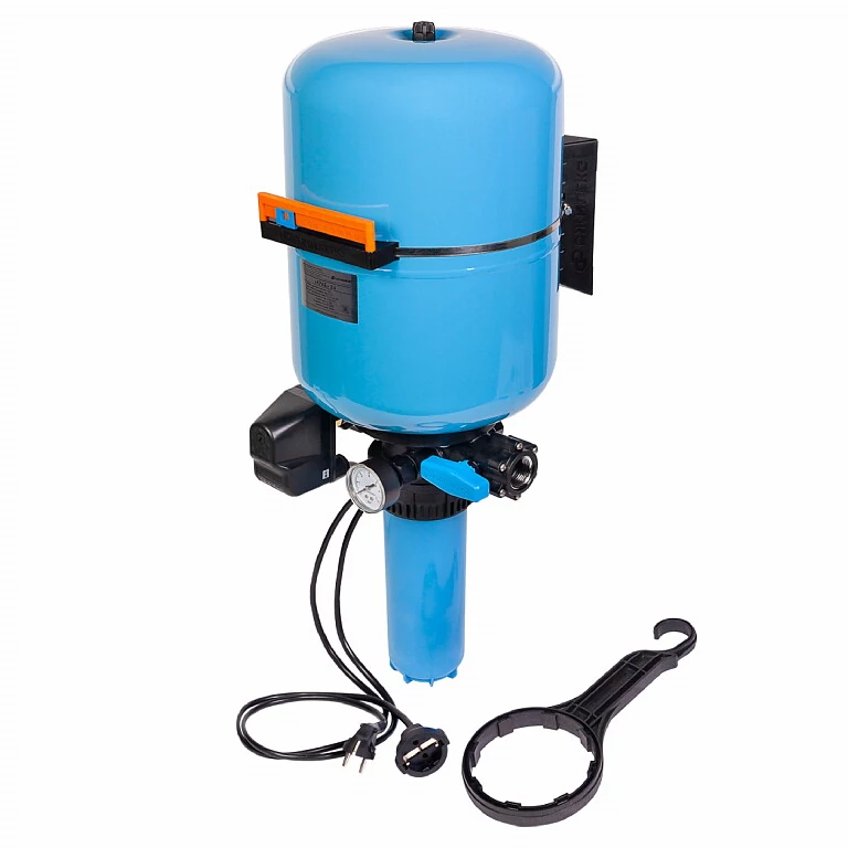 Гидроаккумулятор КРАБ 24 с баком 24 литра предназначен для поддержания заданного давления в системах водоснабжения с предварительной фильтрацией воды. Легкий и удобный монтаж. Не требует дополнительной настройки. Автоматическое управление включением/выключением электронасоса. Полный комплект для автоматизации системы водоснабжения. Предварительная фильтрация воды. Календарь смены картриджей фильтра. Вся система устойчива к коррозии. Позволяют подключаться в любом удобном месте магистрали вне зависимости от направления потока воды.