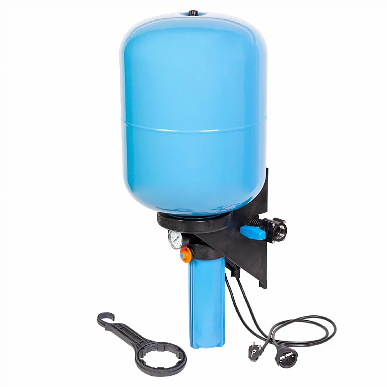 Гидроаккумулятор КРАБ-Т 50 предназначен для поддержания заданного давления в системах водоснабжения с предварительной фильтрацией воды. Легкий и удобный монтаж. Не требует дополнительной настройки. Автоматическое управление включением/выключением электронасоса. Полный комплект для автоматизации системы водоснабжения. Предварительная фильтрация воды. Календарь смены картриджей фильтра. Вся система устойчива к коррозии. Позволяют подключаться в любом удобном месте магистрали вне зависимости от направления потока воды. Объем бака 50 литров.