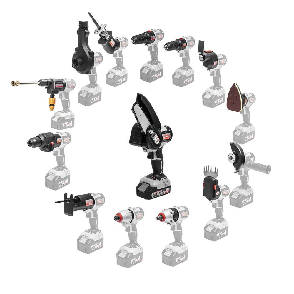 Цепная пила ПЦА-4/18В МультиМАКС 18 – основа для формирования необходимого инструментального набора в зависимости от специализации пользователя. При желании и необходимости его можно без каких-либо сложностей и заметных расходов дополнить дрелями-шуруповертами ДА-13/18В (безударная) или ДАУ-13/18В (ударная), перфоратором ПА-14/18В, угловой шлифовальной машиной УШМ-125/18В, сабельной пилой НПА-100/18В, лобзиком МПА-50/18В, реноватором МФИ-18В, мини-мойкой АМ-30/18В, ножницами для травы НСА-80/18В, гайковертом ГАУ-300/18В, шуруповертом ШАУ-180/18В и прочим инструментом – всего более 15-ти наименований.