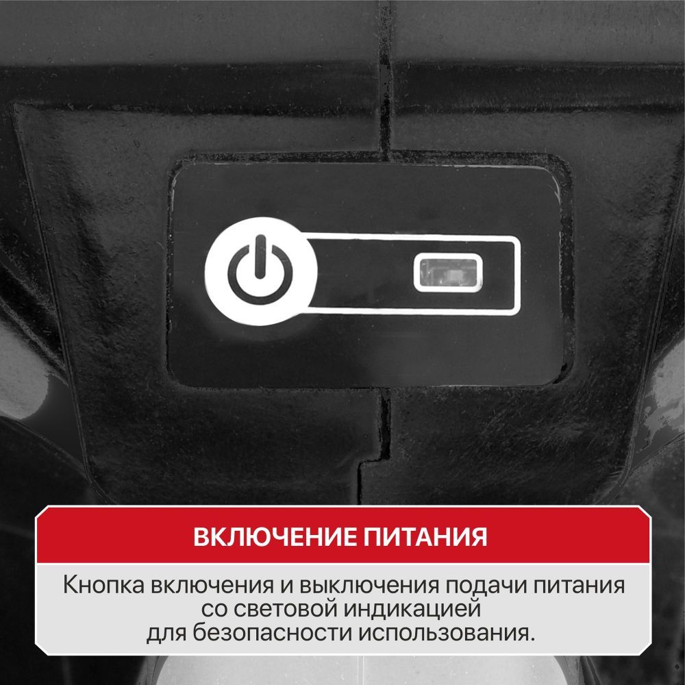 ● Выключатель с защитой от случайного включения и дополнительная кнопка включения питания для безопасной работы.