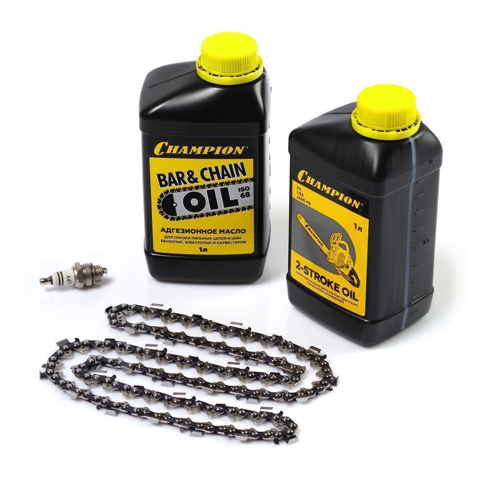 - Масло для смазки пильных цепей и шин CHAMPION 1л - 1 шт.;