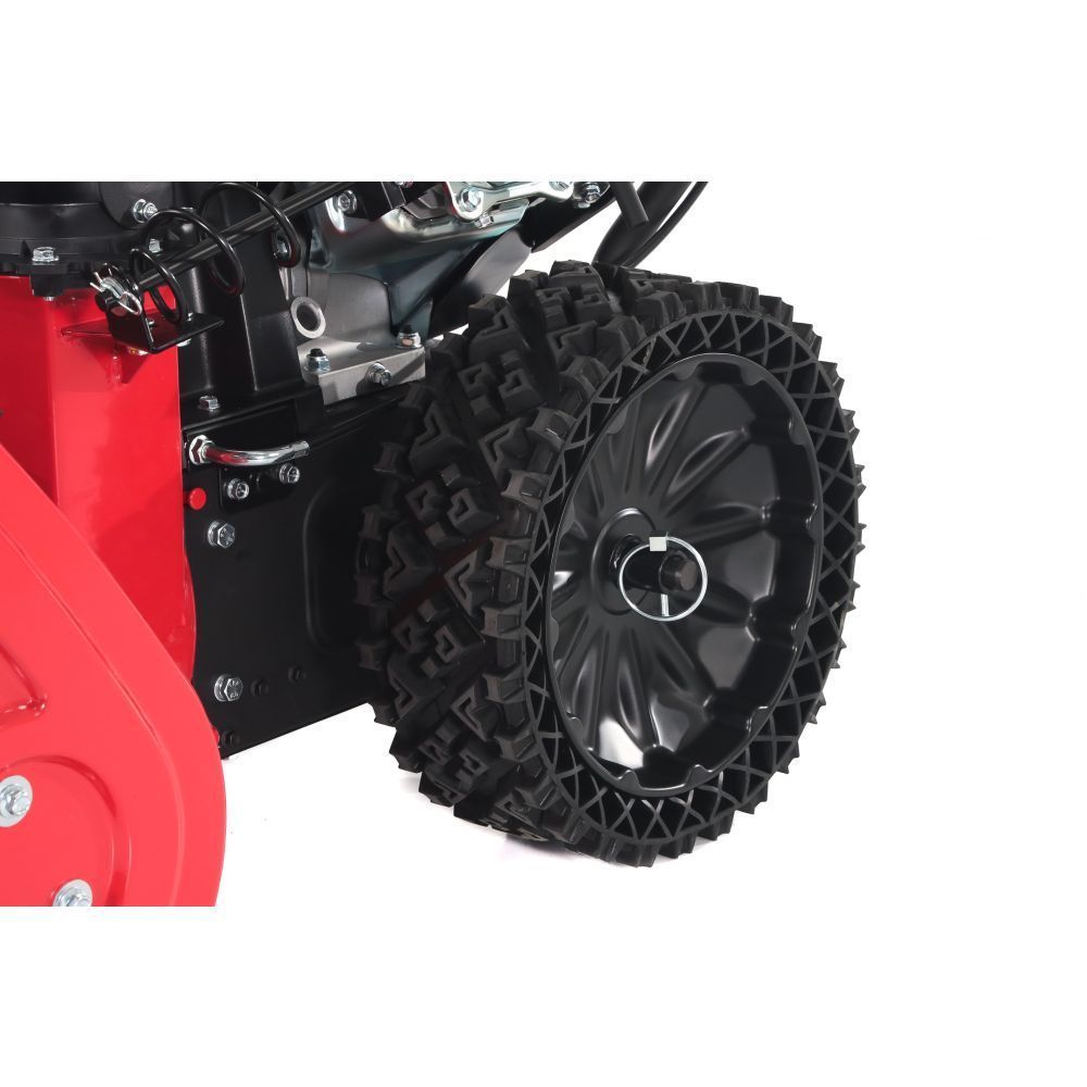 - Большие 14-тидюймовые колеса с бесвоздушными зимними шинами обеспечивают отличную проходимость в глубоком снегу и на льду