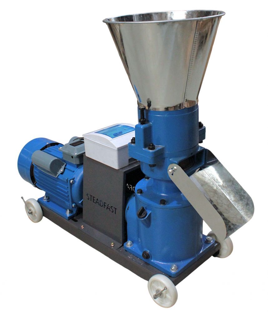 Электрический гранулятор «SteadFast» модель ИЗ-30 - это электромеханическое устройство, предназначенное для переработки твёрдого, сухого, предварительно измельчённого и увлажнённого сырья (пшеницы, кукурузы, ячменя, ржи, масличных культур, бобов, сена, растительных отходов и т. д.) в мелкие гранулы для кормления домашних животных. Возможно гранулирование не только однородного сырья, но и в смеси с другими материалами.