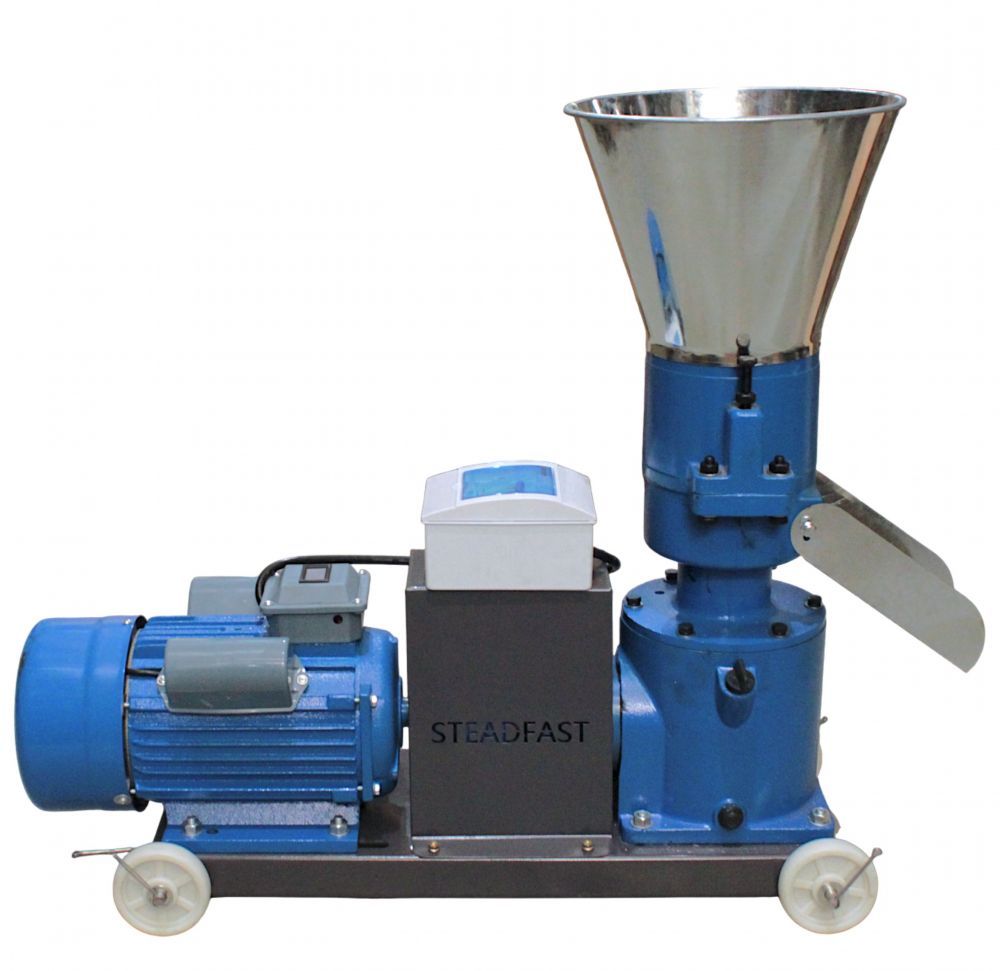 Электрический гранулятор «SteadFast» модель ИЗ-40 - это электромеханическое устройство, предназначенное для переработки твёрдого, сухого, предварительно измельчённого и увлажнённого сырья (пшеницы, кукурузы, ячменя, ржи, масличных культур, бобов, сена, растительных отходов и т. д.) в мелкие гранулы для кормления домашних животных. Возможно гранулирование не только однородного сырья, но и в смеси с другими материалами.