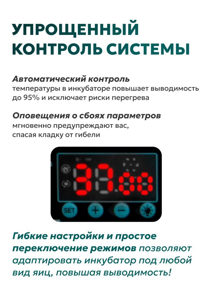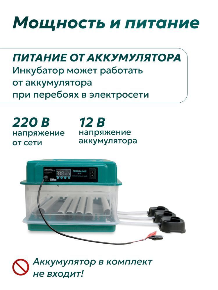 Инкубатор GREEN FARMER З-30 - отличное решение для тех, кто хочет заниматься разведением птиц, будь то начинающий любитель или опытный фермер. С его помощью можно эффективно инкубировать различные виды яиц, включая куриные, перепелиные, утиные, индюшиные, гусиные и другие.
