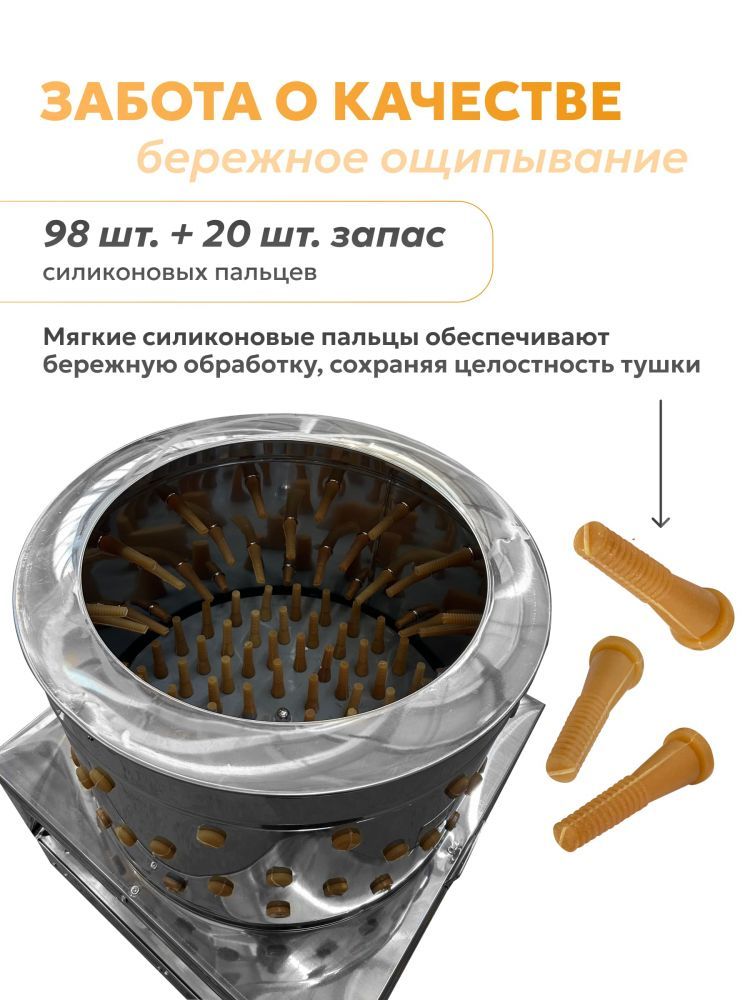 Перосъемная электрическая машина GREEN FARMER GF-500WP используется для ощипывания кур, индеек, уток, гусей и другой домашней и дикой птицы. Машина легка в использовании, производительна, а главное позволяет экономить время птицевода. Работает машина по принципу центрифуги, рабочими органами которой являются резиновые пальцы. Применение специальных перосъемных (бильных) пальцев позволяет избежать повреждения кожи птицы. Для смыва перьев в машине предусмотрена подача воды в барабан. Корпус машины и барабан выполнены из нержавеющей стали, что обеспечивает долговечность и гигиеничность использования.