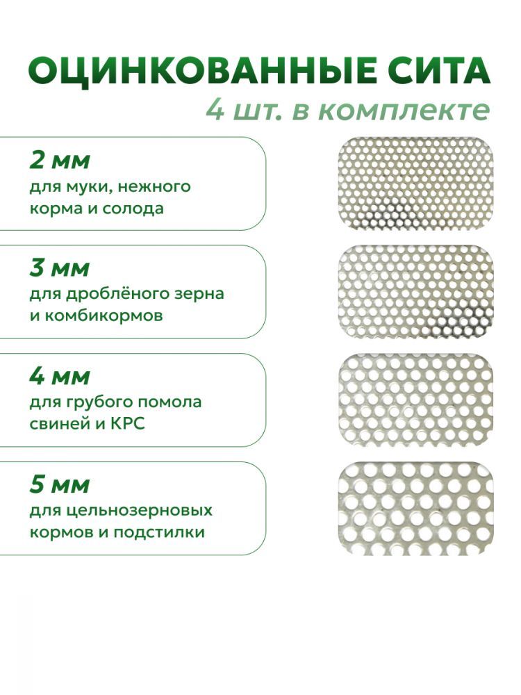 - 4 вида сито с диаметром отверстий: 2, 3, 4, 5 мм.