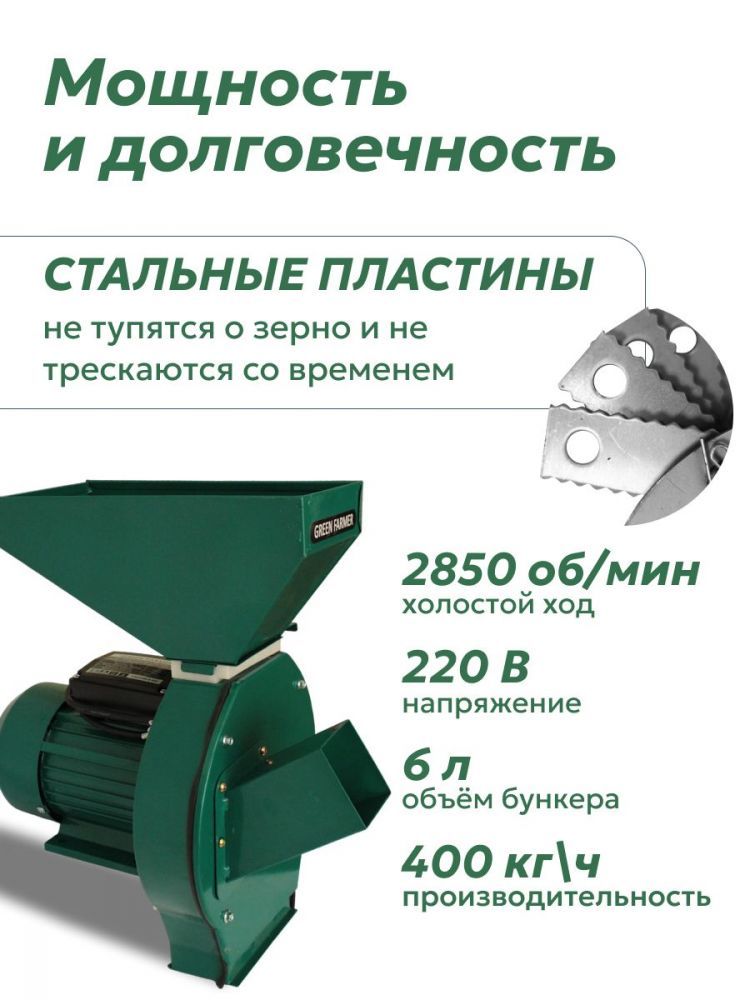 Зернодробилка GREEN FARMER ИК 400Г + Нож-тёрка