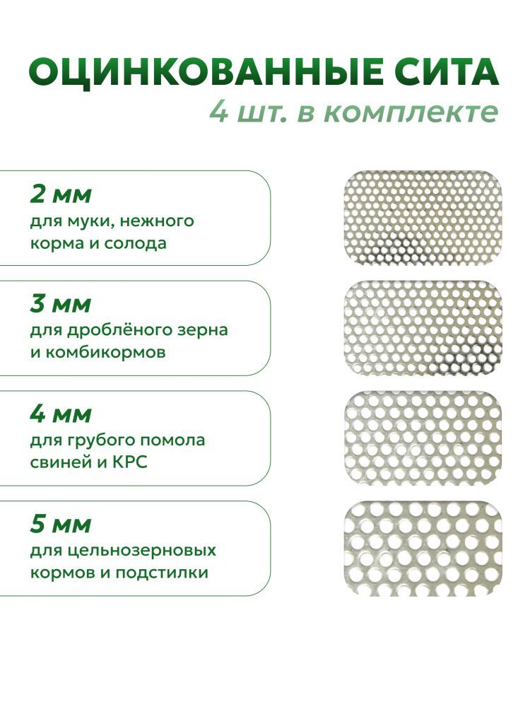 - 4 вида сито с диаметром отверстий: 2, 3, 4, 5 мм,