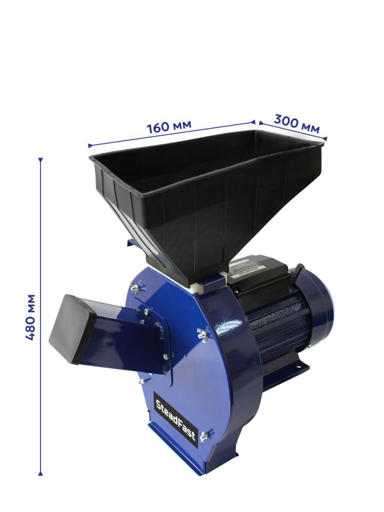 Электрическая зернодробилка SteadFast, модель ИЗ-4-01 предназначена для переработки и измельчения корнеплодов, стеблей, травы, сена, а также различного зернового материала (рожь, ячмень, пшеница, бобы и др.), при подготовке кормов для домашних птиц и животных в личных подсобных хозяйствах.