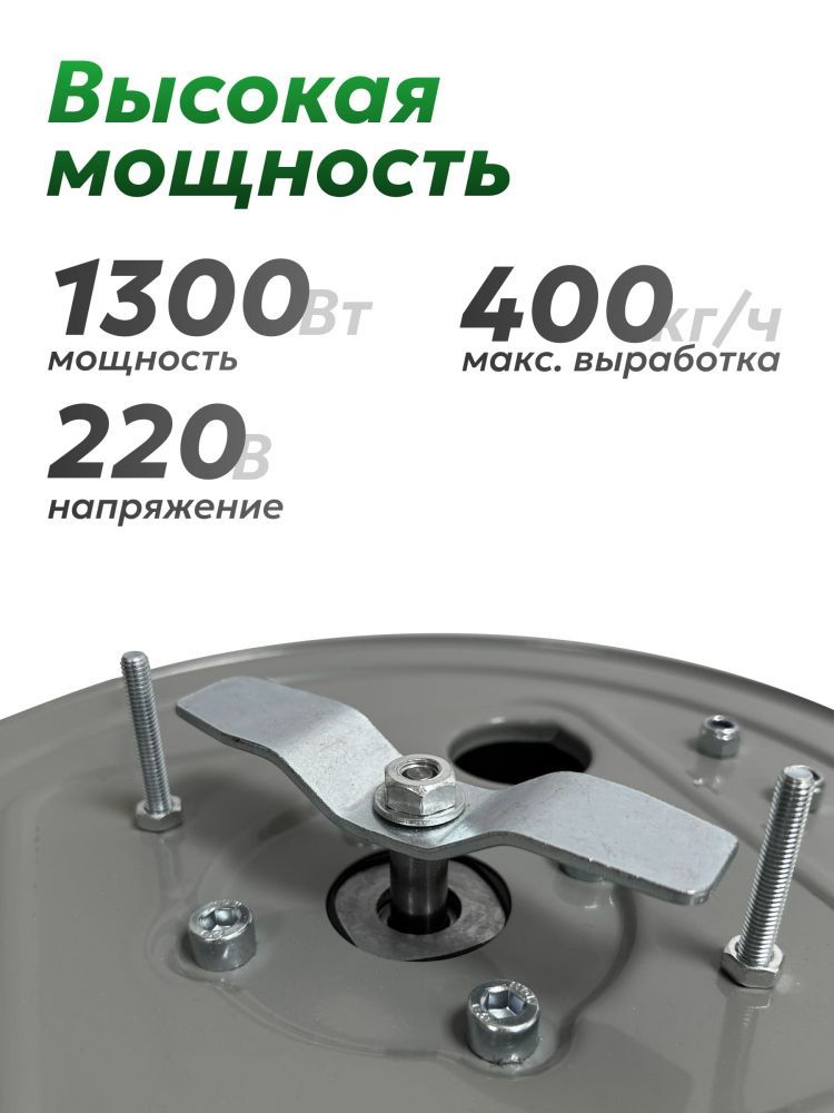 В комплекте 5 видов сито с диаметром отверстий (1 установлено + 4 в запасе): 2, 3, 4, 6, 8 мм.